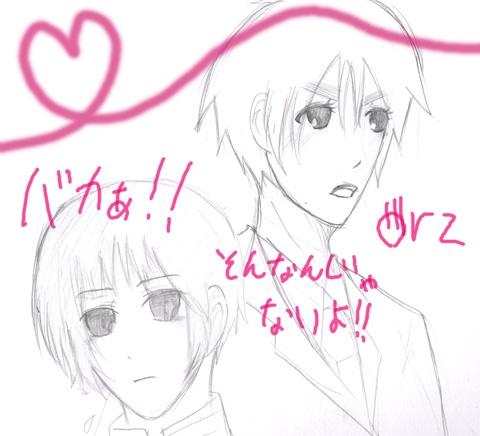 はじめまして!!拍手&リクありがとうございます!!いえいえ、私ほんと雑食なんでどんなカプでもリクしてくださってかまいませんよ!!・・てか英日&米日が本命なのにこんな辺地サイトに通っていただいて恐縮です・・あわわわ!!;;;;とりあえずかわいく描く練習だけしてみました!!明日までにもうちょい絡んだ感じの米日とか描きたいと思うのでもう少しお付き合い願いたいです!!