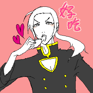 カッコよく→米、普(あご下をすごく尖らせる)